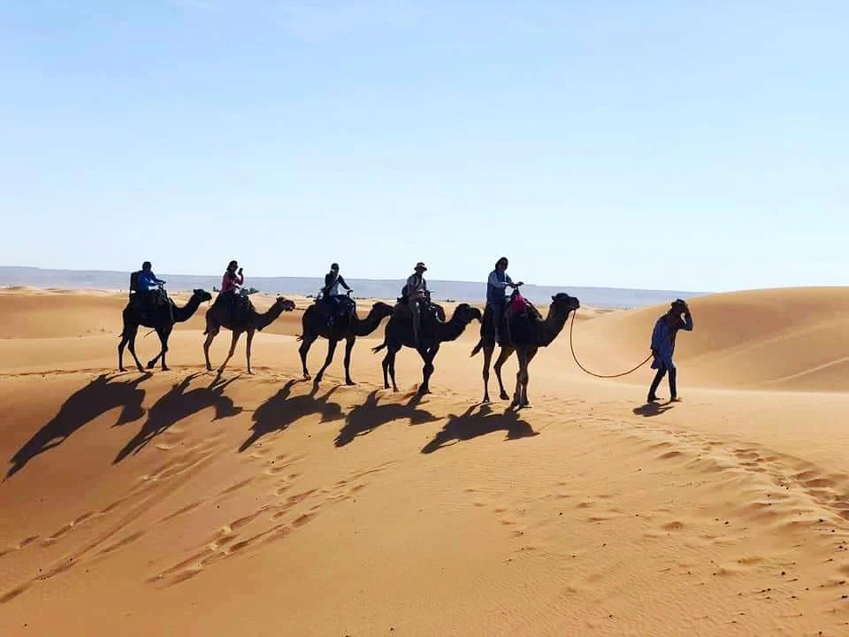 Le Désert du Sahara : Partez vers Merzouga ou Erg Chebbi pour vivre l’aventure unique d’une nuit sous les étoiles, un coucher de soleil sur les dunes et une balade à dos de dromadaire.