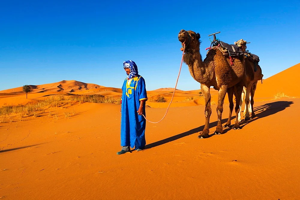 Notre circuit de désert 8 jours commence à Marrakech, la mythique ville ocre, avant de rejoindre Rabat et Fès, deux villes impériales riches en histoire. Vous traverserez ensuite le Moyen Atlas pour atteindre le désert de Merzouga, point culminant du voyage, avec une nuit magique en campement au cœur des dunes de l’Erg Chebbi.