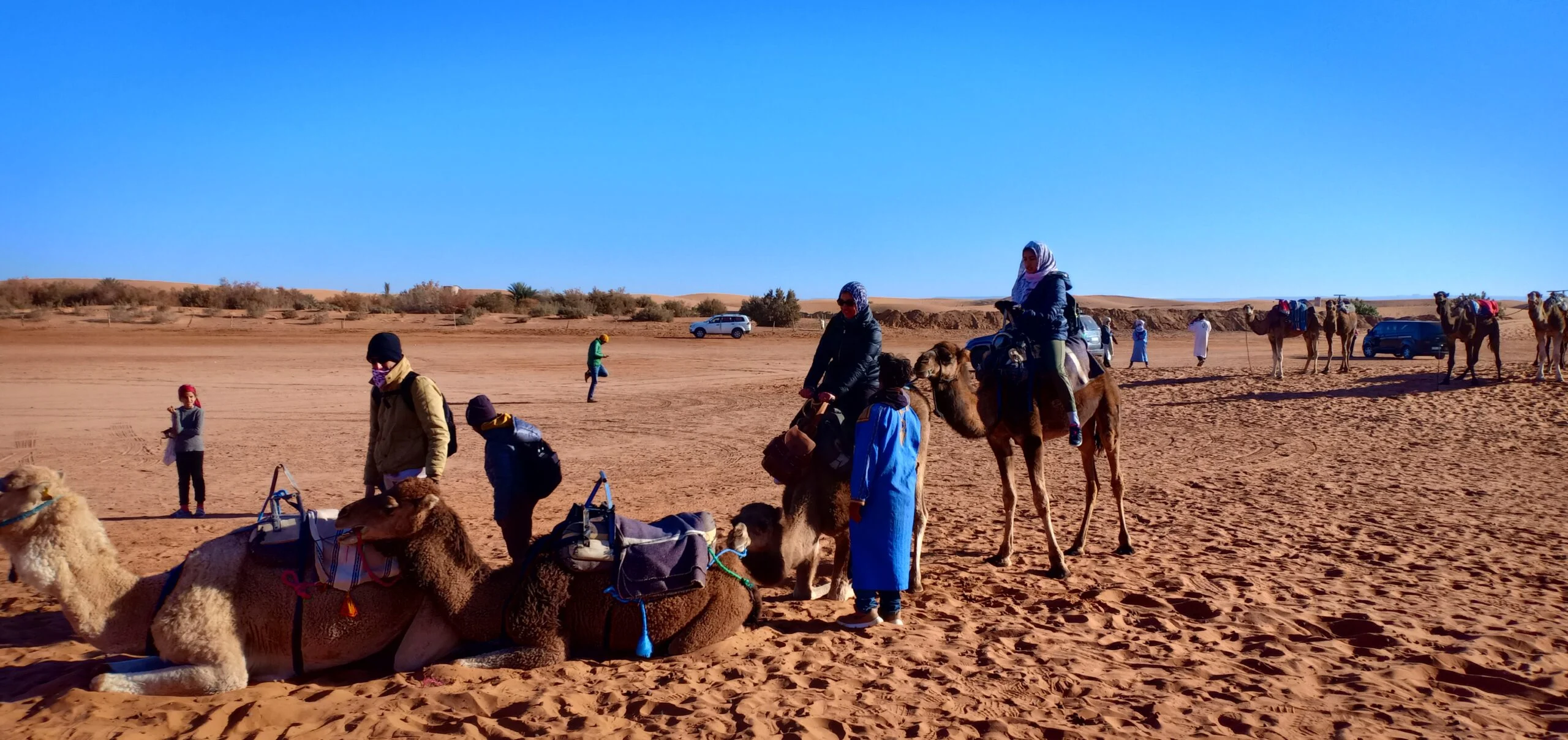 - Balade à dos de chameau dans les dunes dorées de l’Erg Chebbi